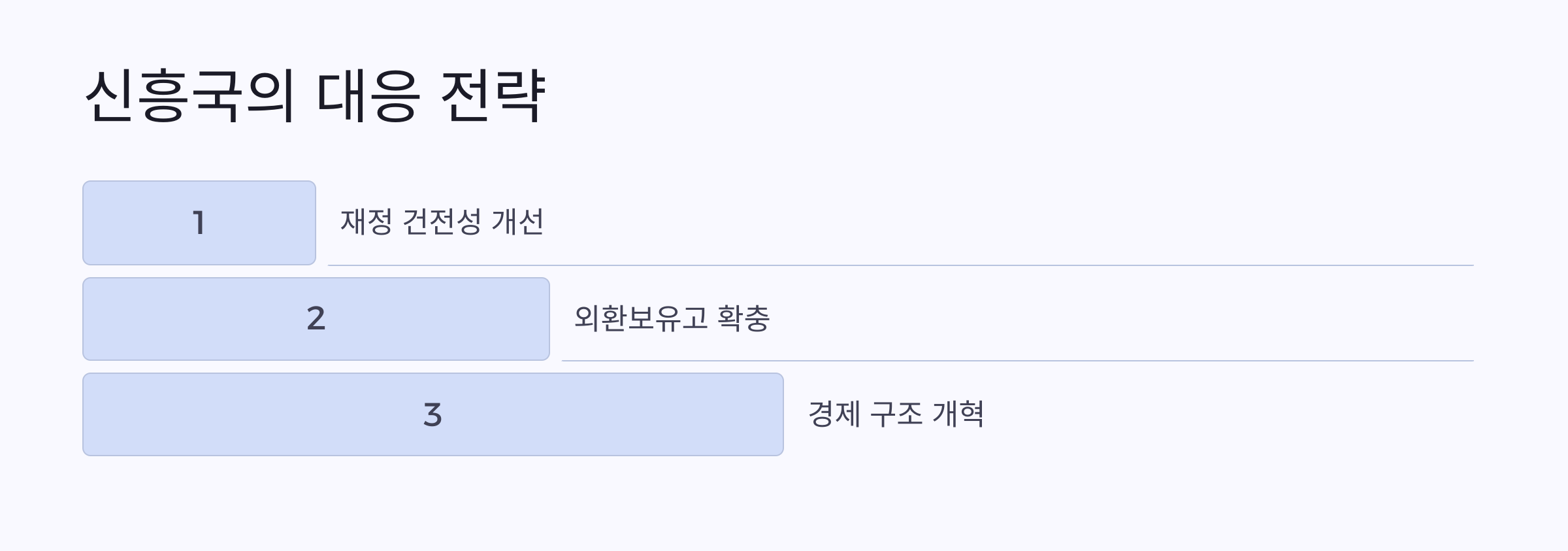 📌 결과: 신흥국들의 경제성장 둔화, 재정 적자 확대, 외환보유액 감소