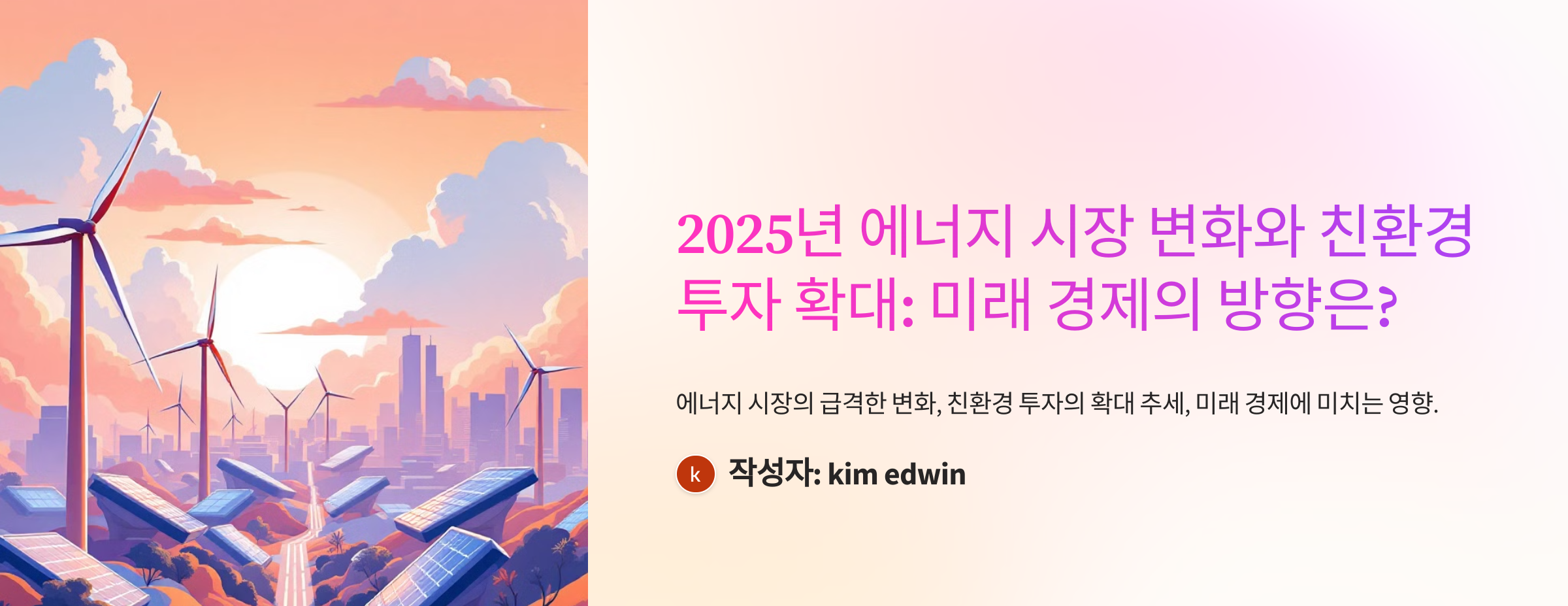 📌 핵심 키워드: 에너지 시장 변화, 친환경 투자, 탄소중립, 신재생 에너지, 글로벌 경제